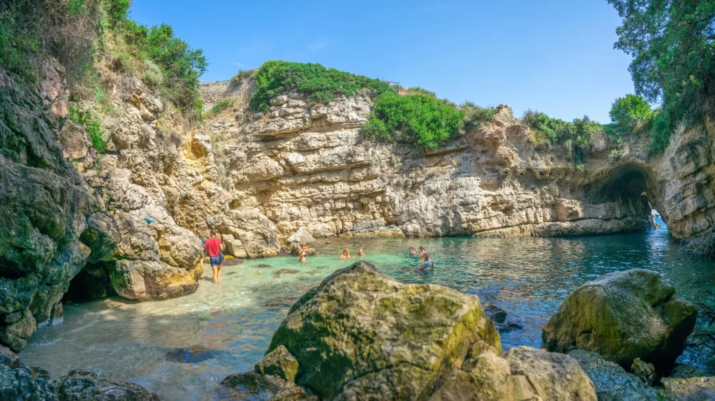 ბუნებრივი ქვის თაღები საბანაოდ დიდ აუზებს ქმნიან. აქ ყველა სანაპირო უფასოა და შეგიძლიათ სორენტოდან ფეხითაც მიხვიდეთ, გზად კი ზეთისხილის და ლიმნის ხეები გაიაროთ.