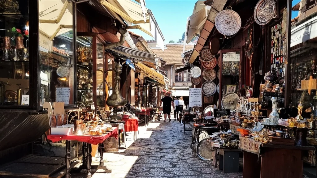 ერთ-ერთი საუკეთესო ადგილი სარაევოს შესწავლა რომ დაიწყოთ, ეს ფერადი ბაზრობაა, რომელიც ქალაქის ისტორიული ცენტრის გულში მდებარეობს, ცნობილი ლაბირინთული ქუჩებით და ხეივნებით. აქ უამრავი დახლია სადაც ტრადიციული ხელნაკეთი ნივთები, საკმაული, სუნელები და სხვა უამრავი რამ იყიდება. სარაევოს ხშირად აღწერენ ფრაზით: “როცა აღმოსავლეთი ხვდება დასავლეთს” და ამ ბაზრობაზე ამას ნამდვილად შეიგრძნობთ.