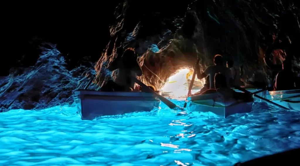ცნობილ ცისფერ ღრმულს ვიზიტორები რომაელი იმპერატორის, ტიბერიუსის პერიოდიდან სტუმრობენ, რომელსაც ისე უყვარდა ეს ადგილი, რომ ის სკულპტურებით შეამკო. ცისფერი ლაგუნას საოცარი ოპტიკური ეფექტი მზის სინათლეს გამოქვაბულის კედლებზე ირეკლავს და წყალს მკაფიო ლურჯ ფერს ანიჭებს, რომელიც ბზინავს. ნავის ტურებს შესასვლელში დაჯავშნით.