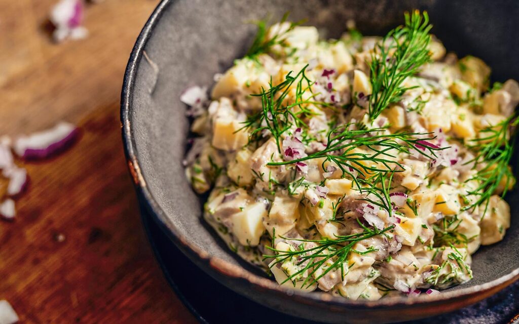 ამ კარტოფილის და ორაგულის კერძმა შვედეთიდან მთელ მსოფლიოში იმოგზაურა. მას მდოგვის სოუსთან მიირთმევენ და საკმაოდ გემრიელია.