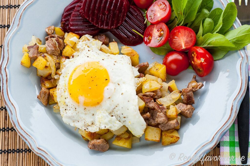 ეს კერძი ალბათ აქამდეც მიგირთმევიათ სახლში დილაობით. ეს შემწვარი კარტოფილის, ხახვის და ხორცის კომბოა, როგორც წესი შებოლილი სოსისით ან ბეკონით. მას კვერცხთან ერთად მიირთმევენ.