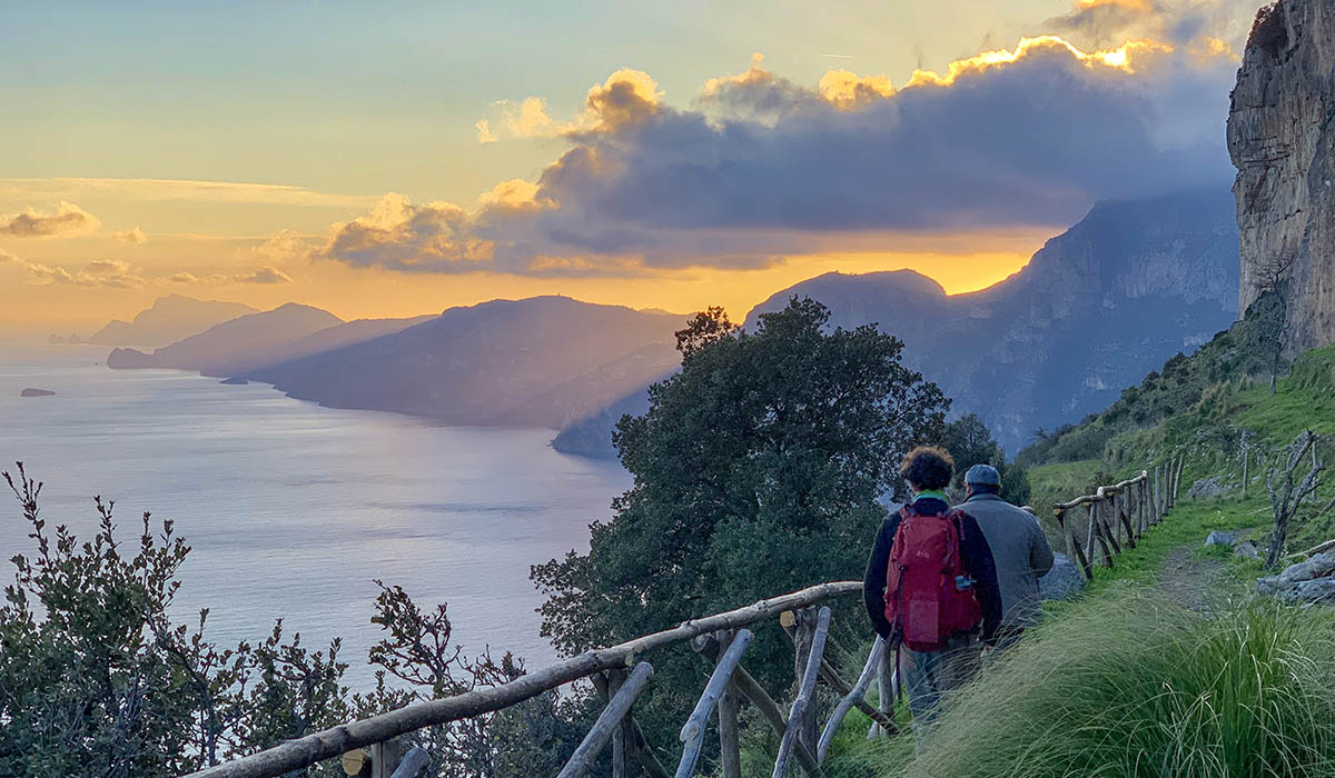 ამალფის სანაპიროზე იტალიის გამორჩეულად სუნთქვაშემკვრელი სალაშქრო გზებია. ერთ-ერთი მათგანია “The Path of the Gods” – 7 კილომეტრზე გაჭიმული გზა ზღვის დონიდან 630 მეტრზე, რომელიც ცაში გამოკიდულის შთაბეჭდილებებს მოგანიჭებთ. საშუალო სირთულის ბილიკს რამდენიმე შესასვლელი და დასასრული აქვს, მაგრამ ყველაზე პოპულარული სოფელ აგეროლაში იწყება და ნოჩელეში (Nocelle) მთავრდება.