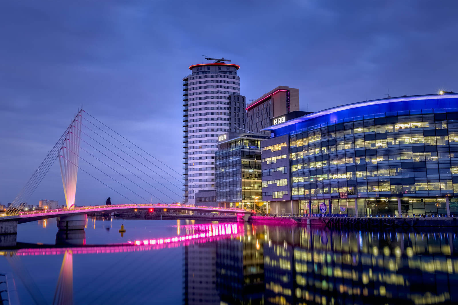 Salford Quays – ერთ დროს ინდუსტრიული ფაბრიკა იყო, მაგრამ წლების მანძილზე მიტოვებულ სივრცეს წარმოადგენდა. ახლა სალფორდი კულტურის ერთი დიდი ჰაბია. ქალაქის ცენტრიდან დასავლეთით, ეს წყლისპირა რეგიონი დიდი ბრიტანეთის უდიდეს სატელევიზიო მედია ორგანიზაციებს, შოპინგ ცენტრს, თეატრს, იმპერიულ ომის მუზეუმს და სხვა ღირსშესანიშნაობებს აერთიანებს. მზის ჩასვლის დროს შუშის შენობებზე არეკლილი ფერები განსაკუთრებით შთამბეჭდავია.