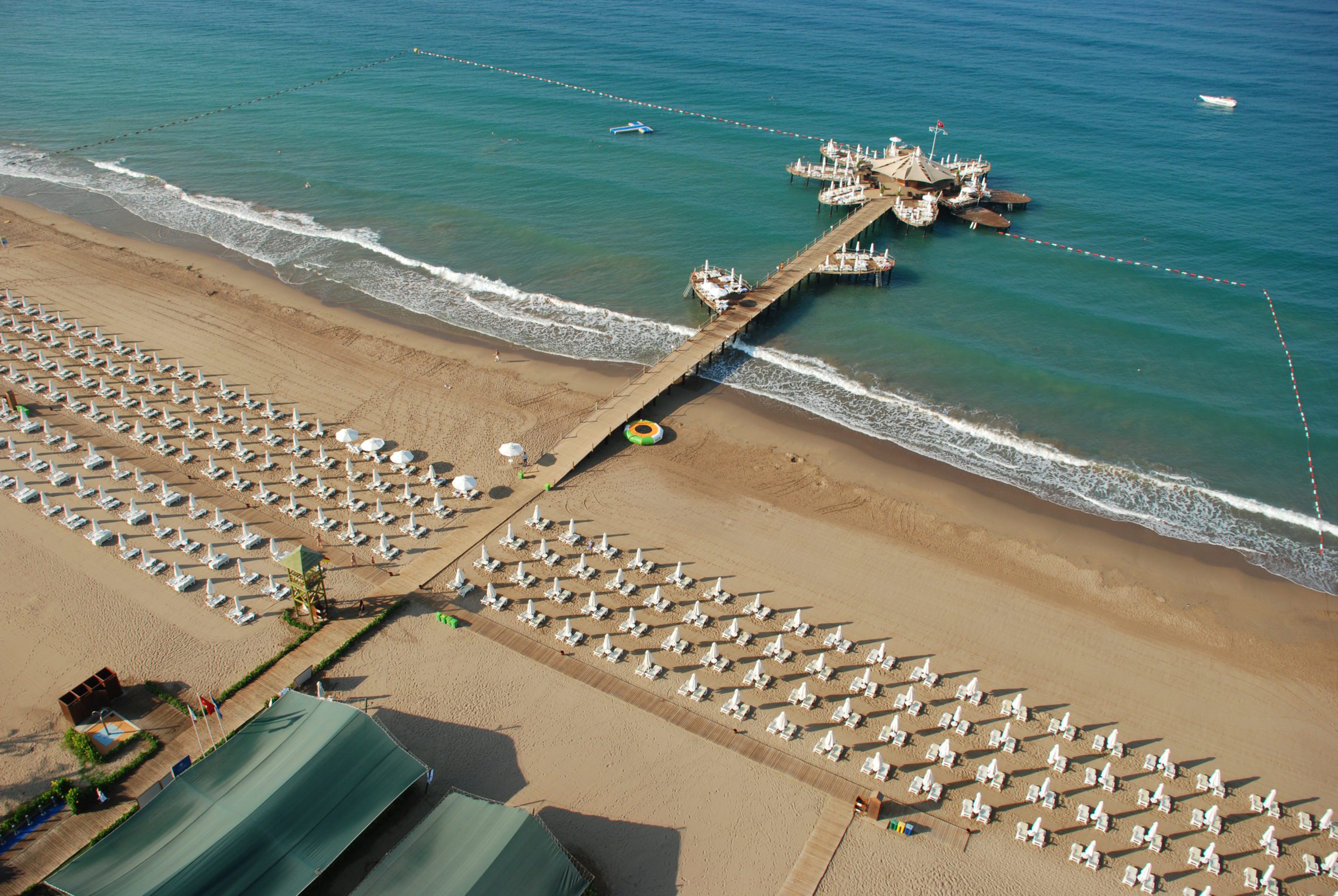 აქ ორი სანაპიროა – ის, რომელიც დასავლეთისკენ მდებარეობს, უფრო კომფორტული და ქვიშიანია, ზღვა კი არ არის ღრმა. აქ მდებარე თითქმის ყველა სასტუმროს პირდაპირი შესასვლელი აქვს სანაპიროზე, რომელიც არ გადაკვეთს ქუჩას, თურქეთის სხვა კურორტებისგან განსხვავებით.