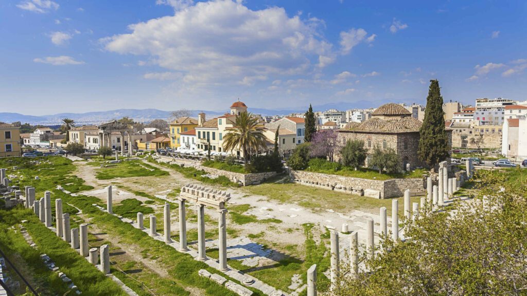 ეს უძველესი ბაზარი ათენელების ყოველდღიური ცხოვრების მთავარი ნაწილი იყო. აქ დღეს ნანგრევებია, თუმცა ბრწყინვალე ხედით ისევ დაიკვეხნის. საუკეთესო გზა აგორაზე მოსახვედრად ადრიანოუს ქუჩაა, წმ. ფილიპის ეკლესიასთან. არაა გასაკვირი, რომ ბერძნულად სიტყვა „აგორა“ ნიშნავს „შეკრებას და ორატორობას“. როგორც იცით ეს იყო ადგილი საჯარო გამოსვლებისთვის.