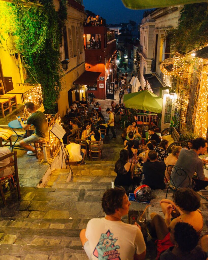 თუ არ იცით რა გააკეთოთ ათენში გვიან საღამოს, ამ ადგილისკენ გაეშურეთ. აქ რესტორნები საღამოობით საკმაოდ გადატვირთულია. სხვადასხვა ტიპის ბარები საერთო, სასიამოვნო ატმოსფეროს ქმნიან. როცა შიდა სივრცეებში ადგილი აღარ არის, ადამიანები კიბეებზე დალაგებულ ბალიშებზე ან ხის სკამებზე სხდებიან. სოციალიზაციის კუთხით აქ მოხვედრა ნამდვილად გესიამოვნებათ.