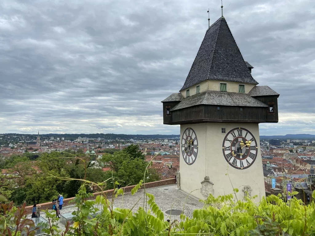 ხლოსბერგის მთაზე ფუნიკულიორის რკინიგზით მოხვდებით, რომელსაც მის წვერზე მოსახვედრად 3 წუთი სჭირდება. ფეხით ასვლის შემთხვევაში 20 წუთი დაგჭირდებათ. აქ 28 მეტრი სიმაღლის საათის კოშკი მდებარეობს, ქალაქის საკულტო მშვენება. დასხედით კაფეში, მოინახულეთ ღია ცის ქვეშ თეატრი ან უბრალოდ გადახედეთ გრაცს.