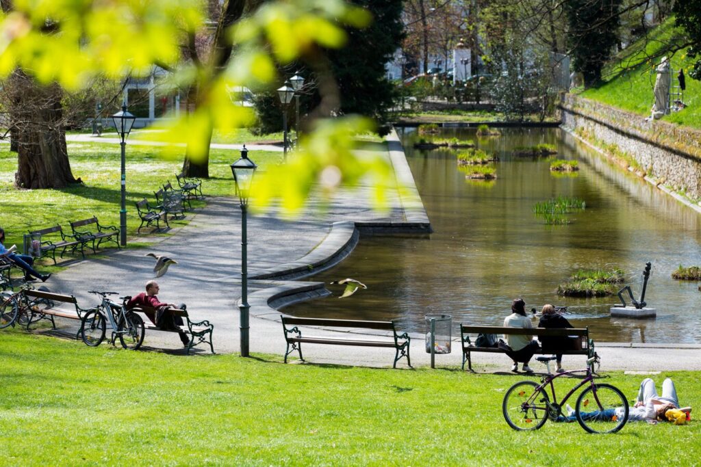 Graz Stadtpark ქალაქის ძველი ციხესიმაგრის ადგილას აშენდა. მუნიციპალურ პარკში იმპერატორმა ფრანსის ჟოზეფმა შადრევნის გარშემო ბევრი ცნობილი ადამიანის მონუმენტი განათავსა. მათ შორის არიან ავსტრიელი მწერლები, მეცნიერები და პოლიტიკოსები.