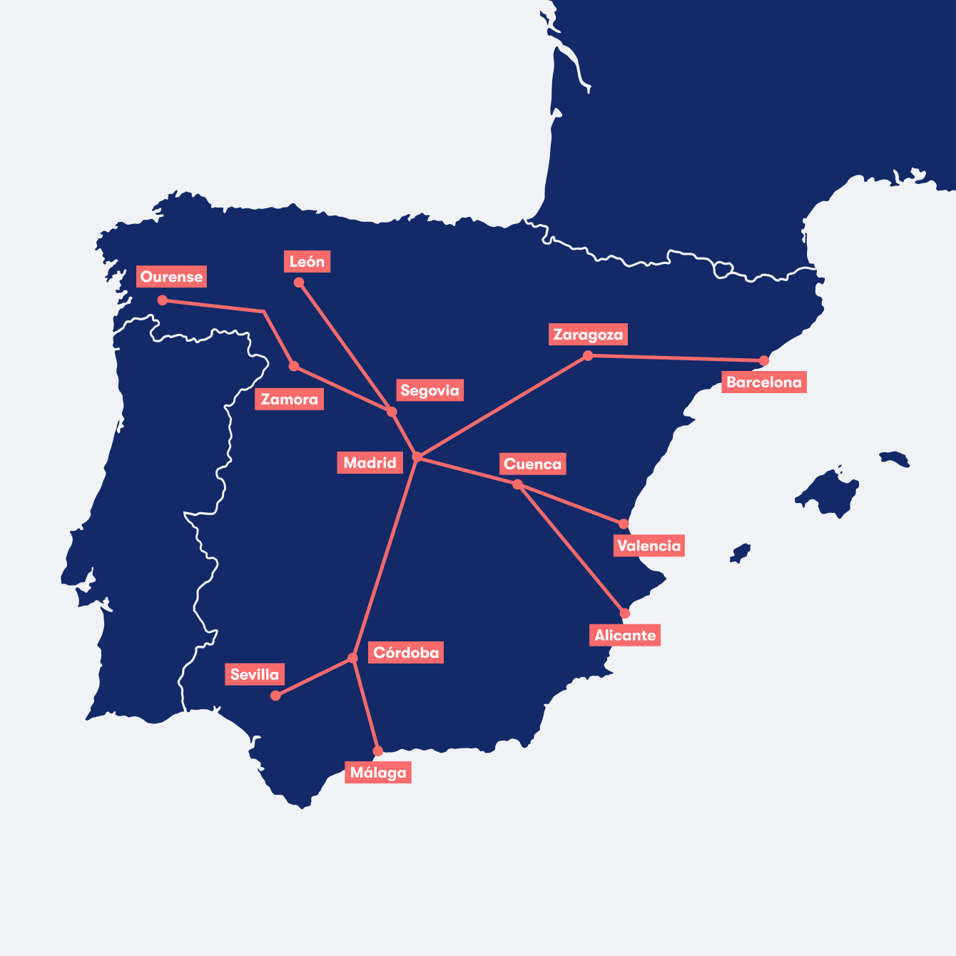 ესპანეთში მატარებელი უფრო სწრაფი და იაფია, ვიდრე თვითმფრინავი. მაგალითად, მადრიდიდან ბარსელონაში ფრენას 1.15 სთ სჭირდება, მატარებელს 2.15 სთ, მაგრამ იმის გათვალისწინებით, რომ აეროპორტში შემოწმებას და პროცედურებს გავდივართ, დახარჯული დრო ერთმანეთს უტოლდება. მანქანის ქირაობის შემთხვევაშიც, მეტი დრო და თანხა დაგეხარჯებათ.