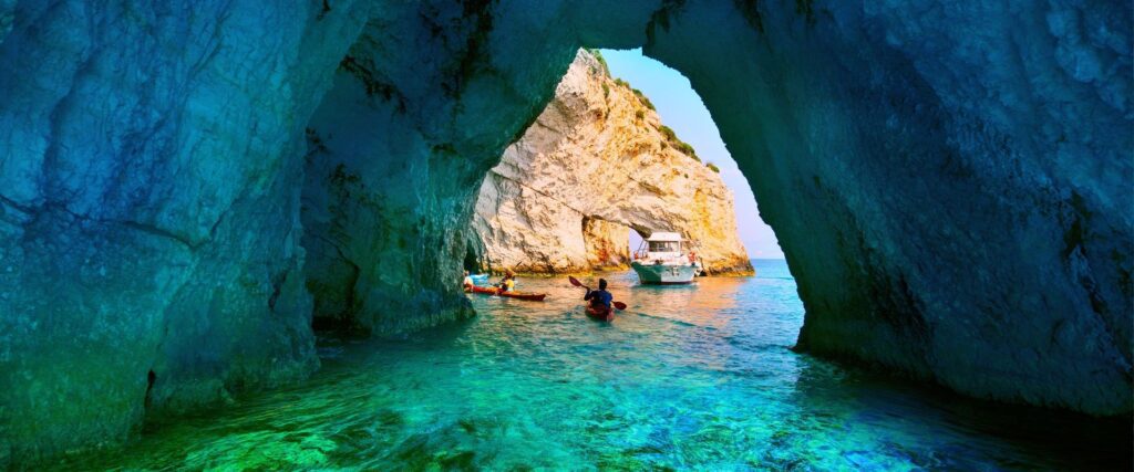 ზაკინტოსის ფოტოგენური სანაპირო კლდეებითაა გაფორმებული. აუცილებლად ნახეთ ცისფერი გამოქვაბულები, რომლებიც ფერს წყლისგან ირეკლავენ. იქ მხოლოდ და მხოლოდ ნავებით მოხვდებით.