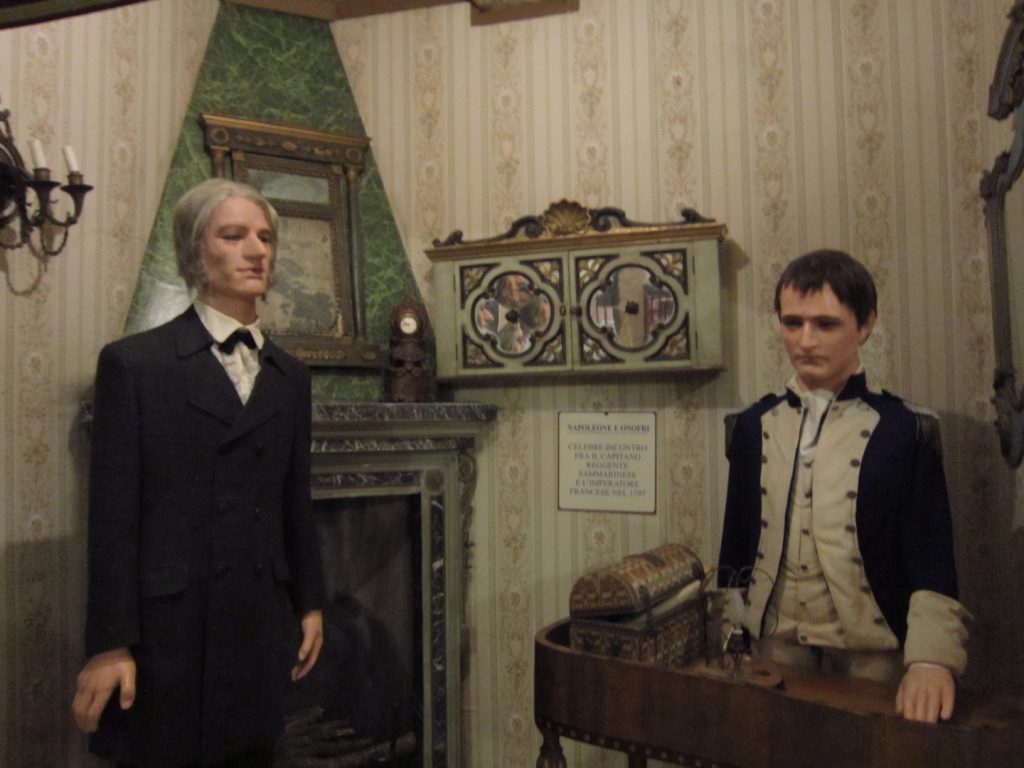 ამ მუზეუმში წარმოდგენილი 100 ცვილის ფიგურა სხვადასხვა ისტორიული გმირია, რომლებიც გარკვეულ სცენებს განასახიერებენ. მაგალითად, ბენიტო მუსოლინი და ადოლფ ჰიტლერი ერთმანეთს ხვდებიან, ხოლო ჯუზეპე გარიბალდი თავის მომაკვდავ ცოლს, ანიტას სარეცელთან უზის. ცნობილ გამომგონებლებს ხელში თავიანთი გამოგონება უჭირავთ.
