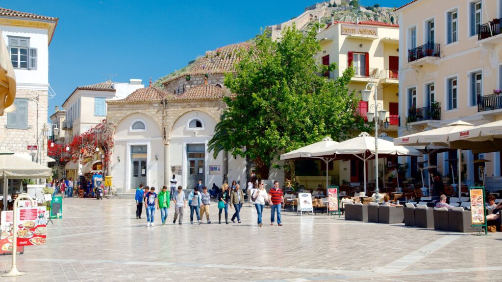 სინტაგმას მოედანი, იგივე კონსიტუციის მოედანი – ქალაქის მთავარი სისხლძარღვია. მარმარილოს ფილებით მორთული რამდენიმე შენობა და ქანდაკება ნაფპლიოს წარსულში გვახედებს. აქ ოტომანური მეჩეთი, ძველი პარლამენტი და დიადი მონუმენტებია, რომლებზეც ქალაქის წარსულის შესახებ წაიკითხავთ.