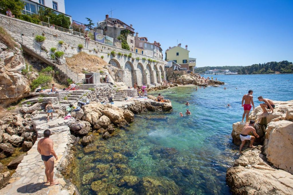Plaža Balota – არაჩვეულებრივი საცურაო ადგილია როვინიში. ეს ტიპიური სანაპირო არაა. აქ დიდი ქვები და სპეციალური კიბეებია. ბარებიდან კი სასიამოვნო მუსიკა საზაფხულო მხიარულებას სძენს ხიბლს.